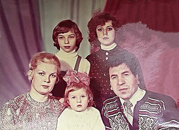 Семья Щепиных. Слева направо нижний ряд: Светлана Георгиевна, дочь Юля, Александр Савватеевич; верхний ряд: дочери Вера и Жанна