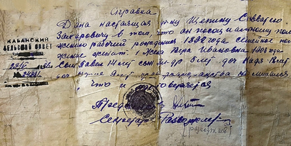Защищал и разрешал семейные конфликты второй муж мамы Савватей, 1892 года рождения, красный партизан, который тоже был старше мамы (на 11 лет).