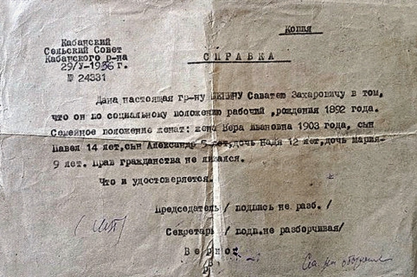 Примечание: По воспоминаниям Александра Щепина у Савватея Захаровича от первого брака была дочь Вера. Они со своей мамой, первой женой отца, приезжали в Иркутск и останавливались в семье Щепиных. Их встречали как родственников. Вера Ивановна, вторая жена Савватея Захаровича, проявляла к гостям уважение и гостеприимство.