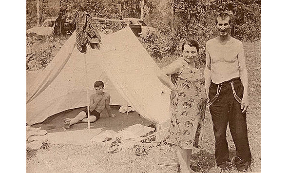 Я в палатке и Вера Ивановна с Савватеем Захаровичем