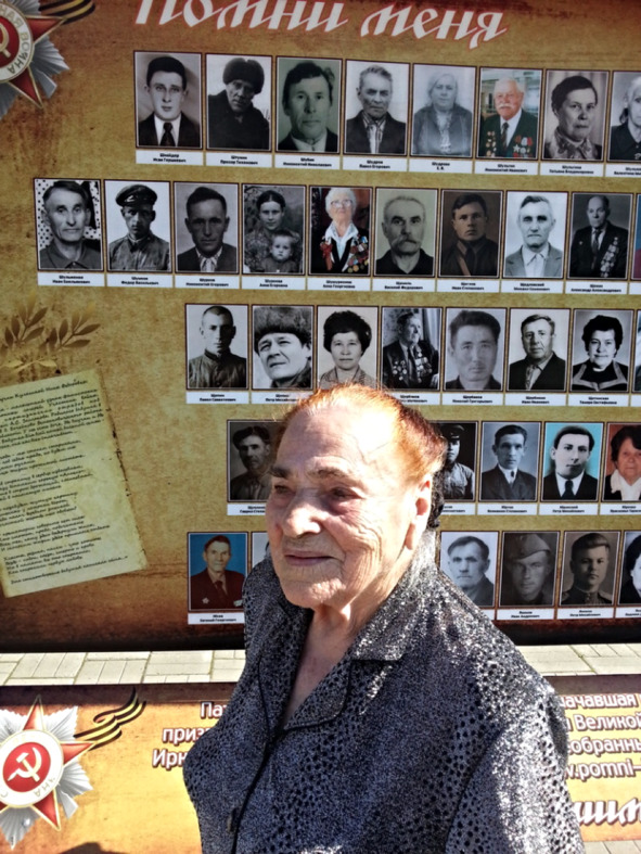 Решетникова Надежда Савватеевна, моя мама, у стенда с фотографией брата Павла
