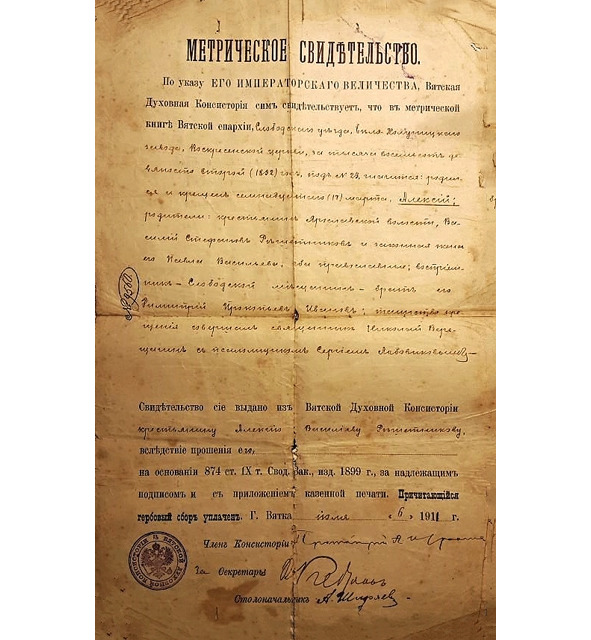 Алексей Васильевич родился в 1892 году в Вятской губернии (ныне Кировская область). Я мало что знаю о молодых годах свекра, так как вошла в семью Решетниковых с 26 апреля 1952 года, а он в том же году 8 ноября умер.