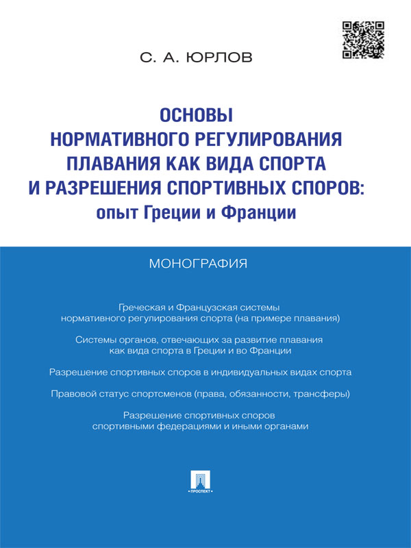 Настоящее издание посвящено основам нормативного регулирования плавания как вида спорта двух стран: Греции и Франции, а также основам разрешения споров в индивидуальных видах спорта с анализом зарубежной практики по данному вопросу. В книге рассматриваются нормативные акты, регулирующие этот вид спорта, порядок трансферов спортсменов-пловцов, общие теоретические подходы к разрешению спортивных споров, а также порядок разрешения споров в юрисдикционных органах и государственных судах. Предназначено для научных работников, преподавателей, аспирантов, студентов юридических и спортивных вузов, руководителей и работников спортивных организаций, органов государственной власти и управления в области физической культуры и спорта, спортсменов, спортивных судей и тренеров, а также для всех, кто интересуется указанным кругом вопросов.