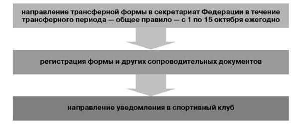 Правила устанавливают запрет на подписание спортсменом трансферной формы о переходе в два или более клуба в течение одного траснферного периода составляет дисциплинарный проступок, который наказывается в соответствии с нормативными документами.