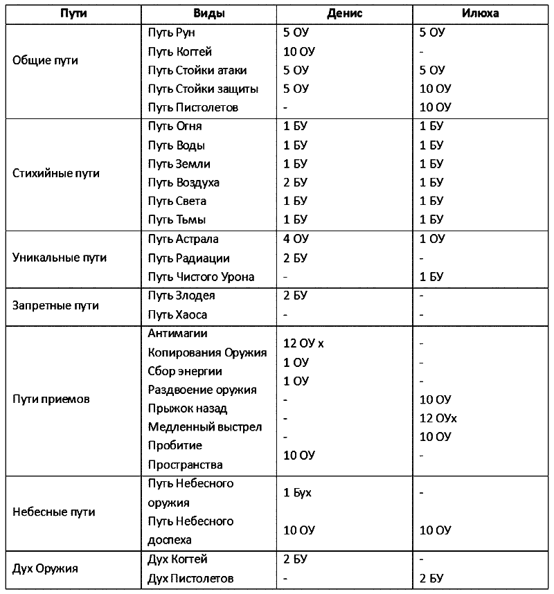 Сокращения: ОУ – обычный уровень, БУ – благородный уровень, Х – путь в тупике