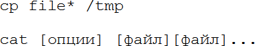cp file1 file2 file3 /tmp – копирует файлы с именами file1, file2, file3 в подкаталог tmp корневого каталога. Это можно выполнить командой: