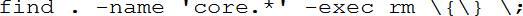 – рекурсивно удалить все core-файлы, начиная с текущего каталога.