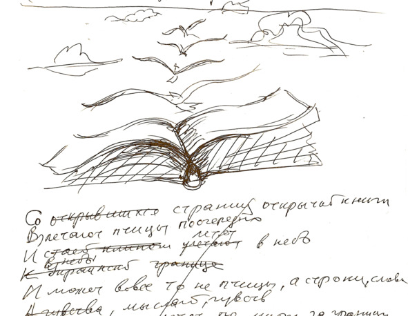 Кружится стая птицВ закате зимнем,Невольно навевая мысльО тайных силах,Повелевающих сознанием,Объединяющих сердцаПорывом общих состояний.Стихи способны передатьДвижения душевных вихрей,И только поэтическое словоЗа вихрями кружить готово.Всё глубже погружаюсьВ первоприроду слова, звукаИ с каждым сердца стуком,Невольно замирающего, чуткого,Всё больше понимаюНеисчерпаемость Его…Оно причины состоянийНам помогает осознать.Оно способно проникатьВ глубины подсознания,Освобождая, очищатьИ, возбуждая, окрылятьПоникшее сознание.Что я могу ещё сказатьО скрытом и проявленном отчасти?Что знать могу ещё о волеСокровенных сил и целях их?Лишь мало-мальски точноМечтаю передать послания,Пришедшие из бездныПод-со-знания.(Вместо введения.)1.1. …ЗаметилНевзначай, стихами говорюИ с кем-то, и с самим собою.А видимо, лишь потому,Что утром я часами,Цепенея, как в гипнозе,Просиживаю над стихамиИ облекаю в формуНеобъяснимые,Загадочные образы,Случайную и неотёсаннуюПолупрозу.С алмазами породу достаюИз шахт глубоких подсознанияИ придаю туманным состояниямКонкретный и прекрасный вид.Рассматриваю и шлифую граниКристаллов мыслей, смыслов, чувств,Предчувствий и предвосхищений…Да, милые друзья, бывает, устаюИ ночью (по утрам) болят глазаОт наблюдений странных сновиденийВ глубинах подсознания.Порой осознаю невиннуюИ необыкновенную дорогу,Неявный смысл глубокий,Невиданную пользуВ такой, казалось бы,Простой работе.1.2. Словно диковинные существаС глубин морского днаВо время яростного шторма,Являются стихи напевныеВ минуты бурь душевных.Приподнимаются ониС бездонной коловертиНеслыханными ритмамиИ смыслами на удивление,Захваченные восхищением,Своим на белый светРождением.(У открытого колодца.)13 мая 2022 г.1.3. Упражняясь в созвучии слов,Удивляюсь поройНепроявленным ранее миром,Предстающим в стихахПредо мной.1.4. Пришёл с прогулки утром,Сел за чай, хлебнул,Дневник открыл и – год забыл…Вне времени я был мгновение,Немного удивился точке зренияИ, в настоящее вернувшись, думал:«Если в стихах пишу посланияИз подсознания, то я лиСочиняю, мыслю, говорю?Возможно, я лишь излагаю иФорму придаю уже готовому,Что стало мне доступно,Вовсе не по личной воле?»Такая необычная работа придаётОсобый смысл уединённой жизни.Словно на службе яУ скрытого сознания,А может, даже разума иного,Неземного?Да, я не одинок в своих усилиях,Если потоки мира касаются души,Ничтожно маленькой частицы,Осознающей, мыслящей себяВ бескрайнем космосе,Совместно суть свою творящейС безмерной силой мира.Задачка сложная:Почувствовать,Истолковать, увидетьИ выразить в словахПослания о настоящем уходящем,Бесследно исчезающем в прошедшемПод надвигающимся предстоящим.А строки – лишь интерпретацияОтрывистых, расплывчатых следовС предчувствиями будущихИ настоящих робких миражей,Переплетённых с тенью смерти,И вечности желаний всеобъемлющих.1.5. Пришедшие во сне стихиНе требуют усилий воли.Они не столько дети разума,Сколько бездонной глубины,Нечеловеческой, бессмертной силыНежданно проявившиеся ангелы,И потому их именуют белыми,Свободными и вольными стихами.1.6. Пульс жизни, чувства, состоянияУшли, оставив лёгкий следВ исписанных листах бумаги,В словах и в ритмах между слов,В рисунках, росчерках,В подчёркиваньях, точках.Не многое,Но что-то всё же естьОт жизненного тока здесь,Что ш