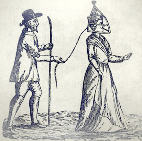 На рисунке мы видим средневековое изображение женщины в маске позора.