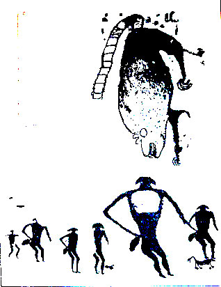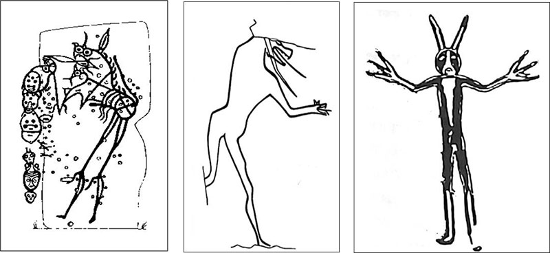 Рис. 21. Окуневские персонажи Сарамы – летающей собаки (божества с птичьими когтями).