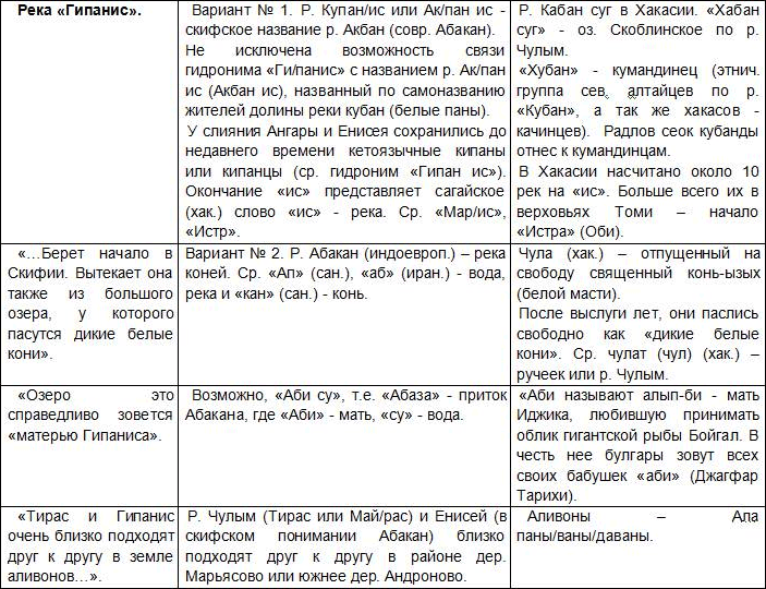 Как нам кажется, под горьким источником Гипаниса, мы должны понимать приток Асхыс (Аскиз) – приток Абакана. Скорей всего, название источника происходит от ас – вода и хыс/кис – кислая, т. е. кислая (горькая) река?
