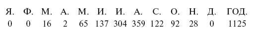 А теперь посмотрим на количество осадков, выпадающих в Каире по месяцам. (Буквы означают месяцы, цифры – миллиметры осадков.)