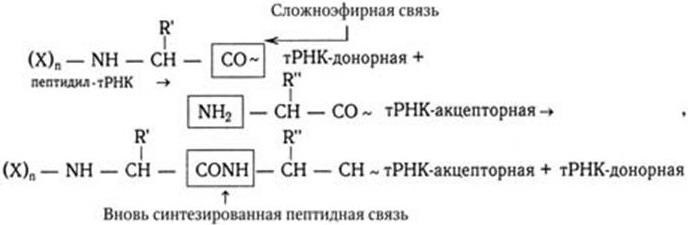 где (X)n – аминоацильные звенья пептидил-тРНК, R – радикалы.