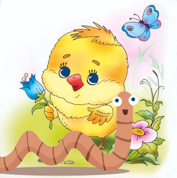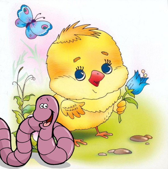 Шёл цыплёнок по дорожке,Там увидел червячка.«Где же ручки? Где же ножки?У ползущего стручка!»Испугался, сел на хвостик.Закричал: « Дружок прости!Ждут меня утята в гости.Дай дорожку перейти!»