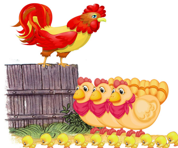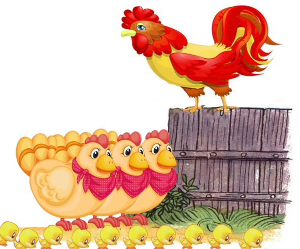 Тут увидела… ЦыплятаПобежали кашу есть.Всю склевали пострелятаДней всего им было шесть.Куры ходят рядом важно.На заборе царь Петух.Ходит, смотрит вниз за каждой.Повторяет громко вслух: