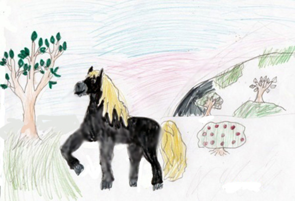 На лужайке под горойБогатырский конь.Златогривый, удалой,Из ноздрей огонь.Богатырская рукаУсмирит коня.Пусть простого мужика,Но богатыря.