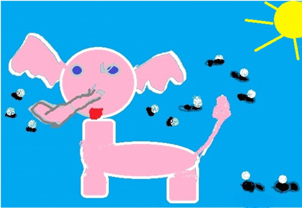 У слонёнка толстого,Уши отросли.Сесть ему на голову,Мухи не смогли.Прилетали тучею,На весь лес жужжа.Падали вниз кучами,Лапками дрожа.