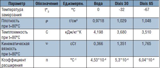 Как говорилось выше, отличие физических свойств воды от других теплоносителей (табл. 1.1) влияет на важнейшие параметры работы системы отопления. Это можно проиллюстрировать сравнением ее свойств с физическими характеристиками одного из самых популярных в России СТ – DIXIS.