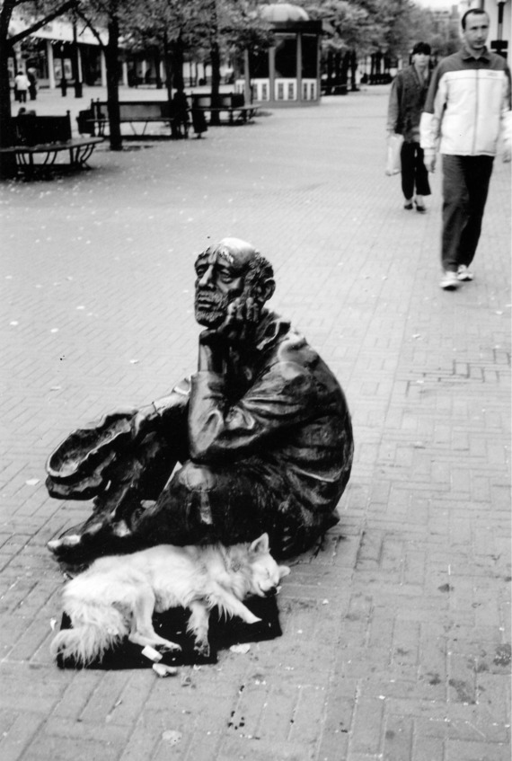 Но, когда спустя пару дней снова прошел мимо нищего, он «сидел» уже один, собаки рядом не было. Не осталось и следов ее пребывания здесь. Нашла ли она своего хозяина или убежала с пробегавшими мимо собаками, или ее просто прогнали – не знаю. Осталась она на этой фотографии и, уверен, в памяти многих горожан.