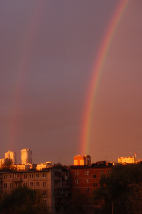Это была радуга. Такой яркой этим летом не помню, чтобы видел.