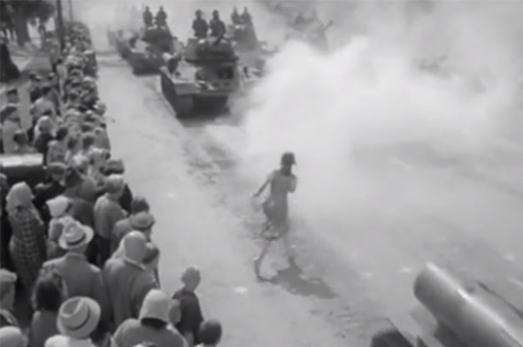 В это время по дороге идет колонна танков – такие выпускались на ЧТЗ. В ленте «На войне как на войне» челябинский ИС-2 сыграл роль немецкой «Пантеры».
