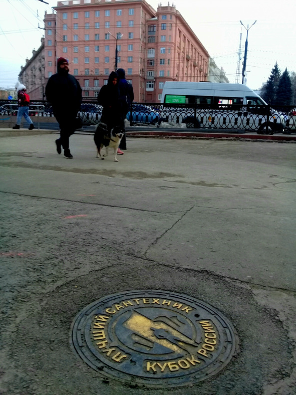 В Челябинске «под ногами» встретил не монету, а крышку люка. Она напоминала о проведении в городе чемпионата сантехников.