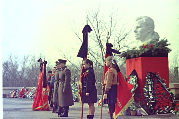 Траурное мероприятие на Алом поле в Челябинске после гибели Юрия Гагарина. 1968 год. Фото Георгия Берзина.