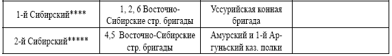 Приамурский ВО – 1-я пехотная Сибирская резервная бригада.