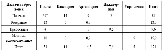 Штатная численность войск Европейской России и Кавказа на 1900 г.