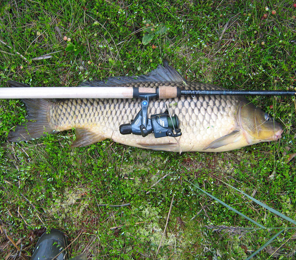 Оказалось, что в нём ловятся мелкие караси, которые не представляли для меня интереса. В конце рыбалки последовала нехарактерная поклёвка: поплавок с ускорением пошёл в сторону, медленно погружаясь. Подсечка – и что-то более серьёзное оказалось на крючке. После непродолжительного сопротивления на берег был вытащен килограммовый карп. А, значит, вы всё же здесь есть!