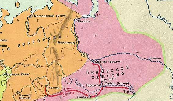 Ко времени правления Ивана IV Грозного часть сибирских земель уже прочно входит в состав русского государства. В 1577 году царский титул, в частности, гласит: «/…/ великий государь царь и великий князь Иван Васильевич всея Руси и владимирский, московский, новгородский, царь казанский, царь астраханский, государь псковский, /…/ у́дорский, обдо́рский, ко́ндинский и всея Сибирские земли и всея Северные страны повелитель и иных многих земель и государь и обладатель»[521]. Ну, со «всея Сибирскими землями» да «всея Северными странами» царь, конечно, погорячился, а вот с более конкретными их частями был прав. (Справедливости ради следует, однако, отметить, что эти удорскую, обдорскую и кондинскую области в свой титул включил не он, а его отец Василий III[522].)