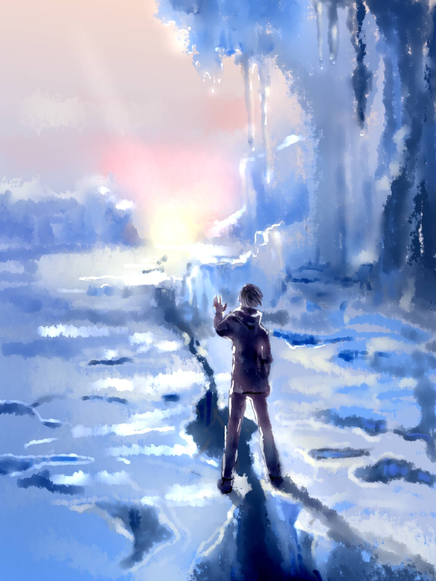 «Пришелец» в теле землянина втиснулся между льдин и, уперевшись руками и ногами, начал понемногу продвигаться. Слой льда оказался намного толще, чем он ожидал. Десятки метров «геолог» пробирался наружу, местами едва не застревая, пока в его глаза не ударил солнечный свет. Он зажмурил глаза и улыбнулся, почувствовав себя в безопасности. Ему казалось, что худшее позади, но через несколько преодолённых метров он понял, что заблуждался. Наверху его встретила необъятная снежная пустыня.