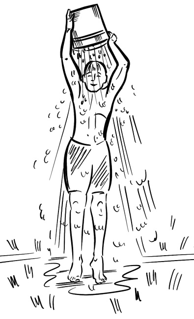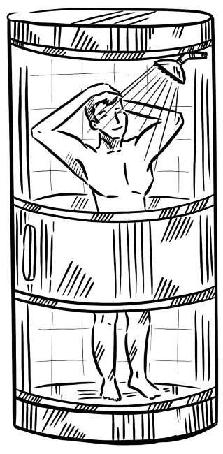 Совет первыйВы приехали в деревню, устали, и вам хочется лечь и немного поспать, но жаль времени: впереди еще полдня. Где же взять энергию? Примите холодный душ, который можно предварительно построить в саду у дома, или опрокиньте на себя ведро холодной воды из колодца, встав при этом в тазик с холодной водой, а если есть водоем, искупайтесь в нем [рис. 1 а, б, в).
