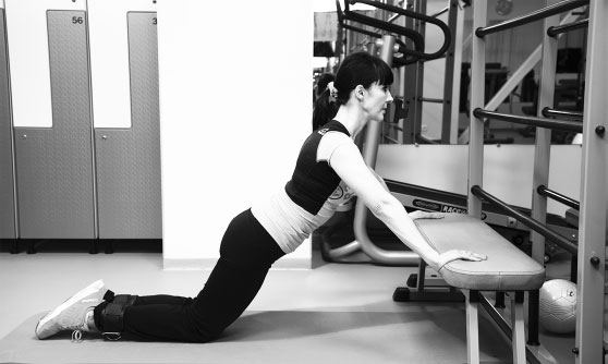 б) Если у вас хватило сил только на 10–15 повторений, да ещё и с большим волевым усилием и согнутыми ногами, то это ваша слабая зона, которая рано или поздно проявится сильными болями. Для исправления этого функционального дефекта вам необходимо пройти курс силового стретчинга в центре современной кинезитерапии – Центре доктора Бубновского (ЦДБ).