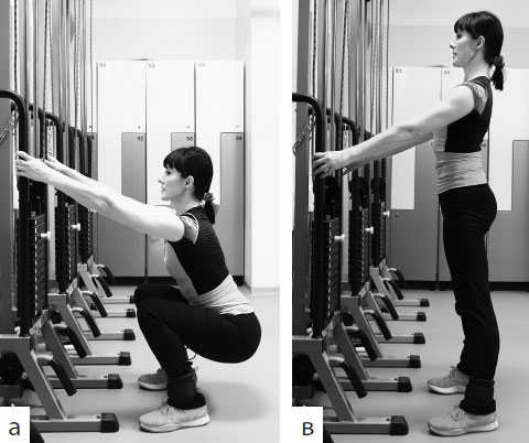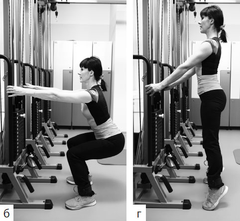 • глубокие приседания и подъем на носки (до жжения в стопе), фото 4 (а, б, в, г).