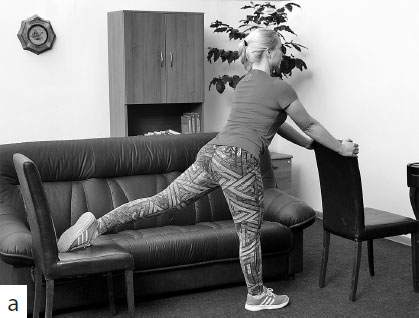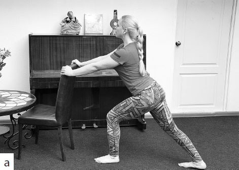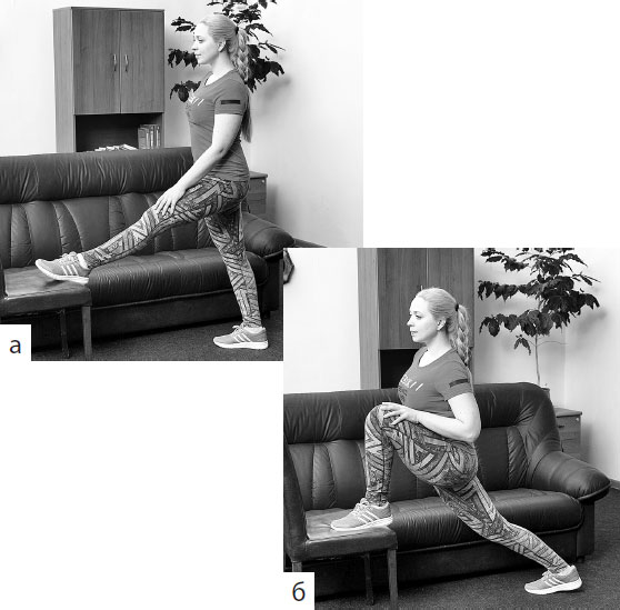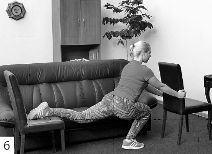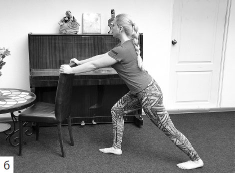 • растяжку ахиллова сухожилия: упор руками в стену и растяжение трехглавой мышцы и ахиллова сухожилия, фото 5 (а, б).
