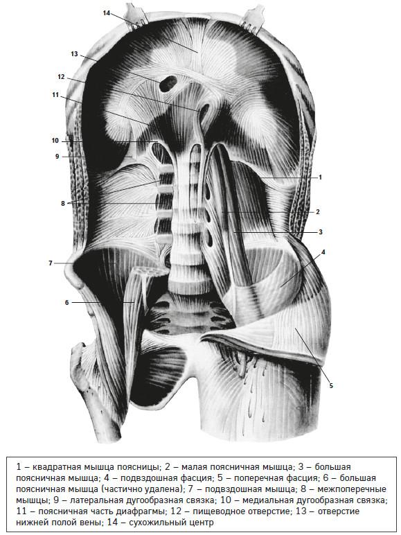 Анатомическая схема. Диафрагма. Вид снизу со стороны брюшной полости