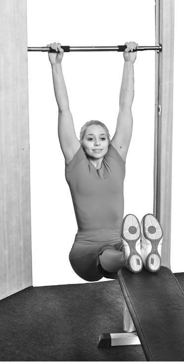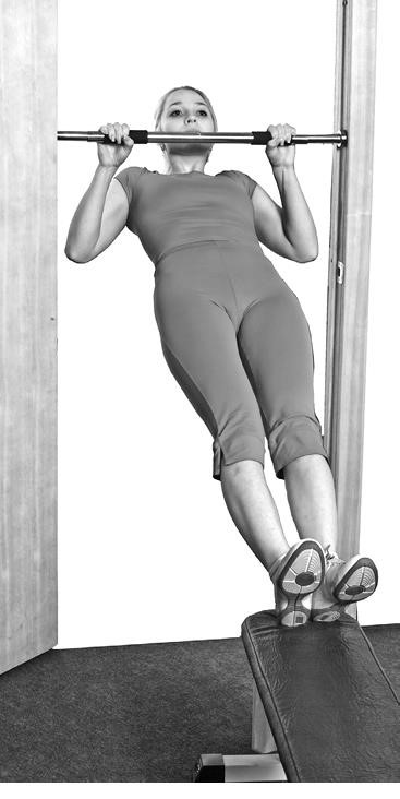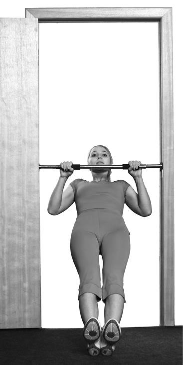 Когда руки окрепнут (а подтягиваться надо через день), турник можно закрепить чуть выше, а ноги (голени – пятки) положить на стул. При подтягивании в таком положении достигается максимальное растяжение верхнего отдела позвоночника (вариант Б) (см. фото 7 в, г).
