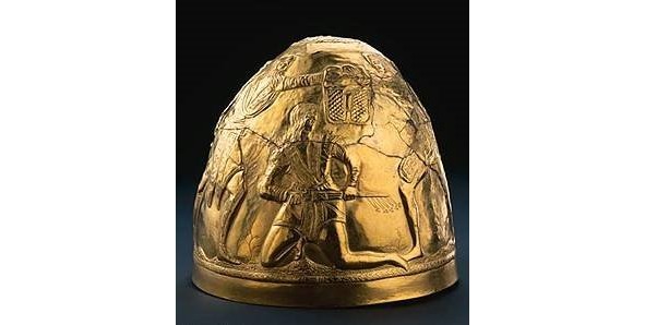 Есть еще одна проблема, препятствующая точному установлению назначения предмета. Во время реставрации внутри изделия не было обнаружено никаких следов ткани, кожи или войлока, т.е. какой-то мягкой, эластичной подосновы, что способствовало бы прочной и удобной фиксации на голове. Правда, этот лабораторный факт не может являться однозначным аргументом – следы ткани и кожи, и, тем более, войлока могли элементарно исчезнуть в результате чистки изделия реставраторами. Велика вероятность и того, что головной убор предварительно почистили и положили в тайник. Поэтому следов органики внутри него не оказалось».