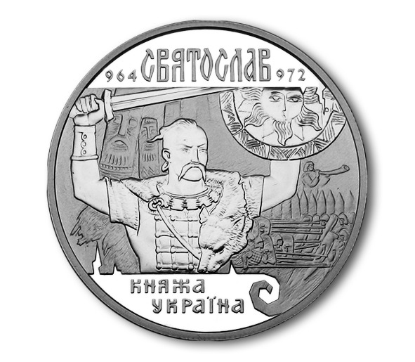 Князь Святослав Храбрый, сын Ольги и Игоря, пожалуй, самый любимый писателями и художниками герой ранней Руси. Его по праву сравнивают с Александром Македонским и Цезарем, о его жизни написана масса книг, картин, песен. Причем, он одинаково почитаем христианами и неоязычниками, русскими и украинцами. В честь князя в уже независимой Украине была отчеканена серебряная десятигривневая монета, вскоре ставшая нумизматической редкостью.