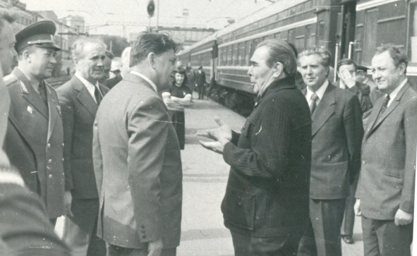 И. А. Бондаренко с Л. И. Брежневым на Главном железнодорожном вокзале Ростова-на-Дону
