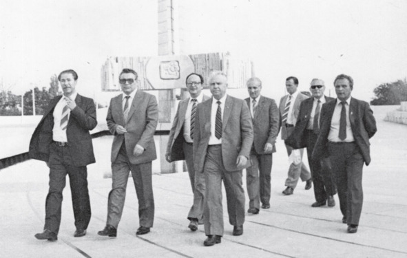 В аэропорту Ростова-на-Дону. Бывший первый секретарь Ростовского обкома КПСС И. А. Бондаренко и новый партийный руководитель областной организации А. В. Власов провожают Е. К. Лигачева. Июль 1984 года.