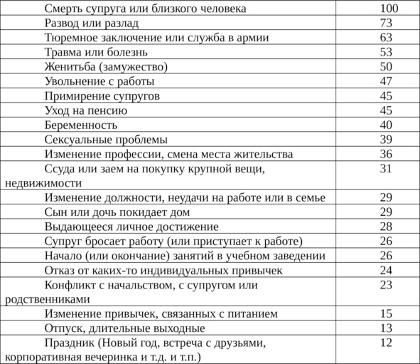 Самое примечательное в этой таблице, что и радости – всевозможные праздники, отпуск, женитьба и удачные события также сопряжены со стрессами.