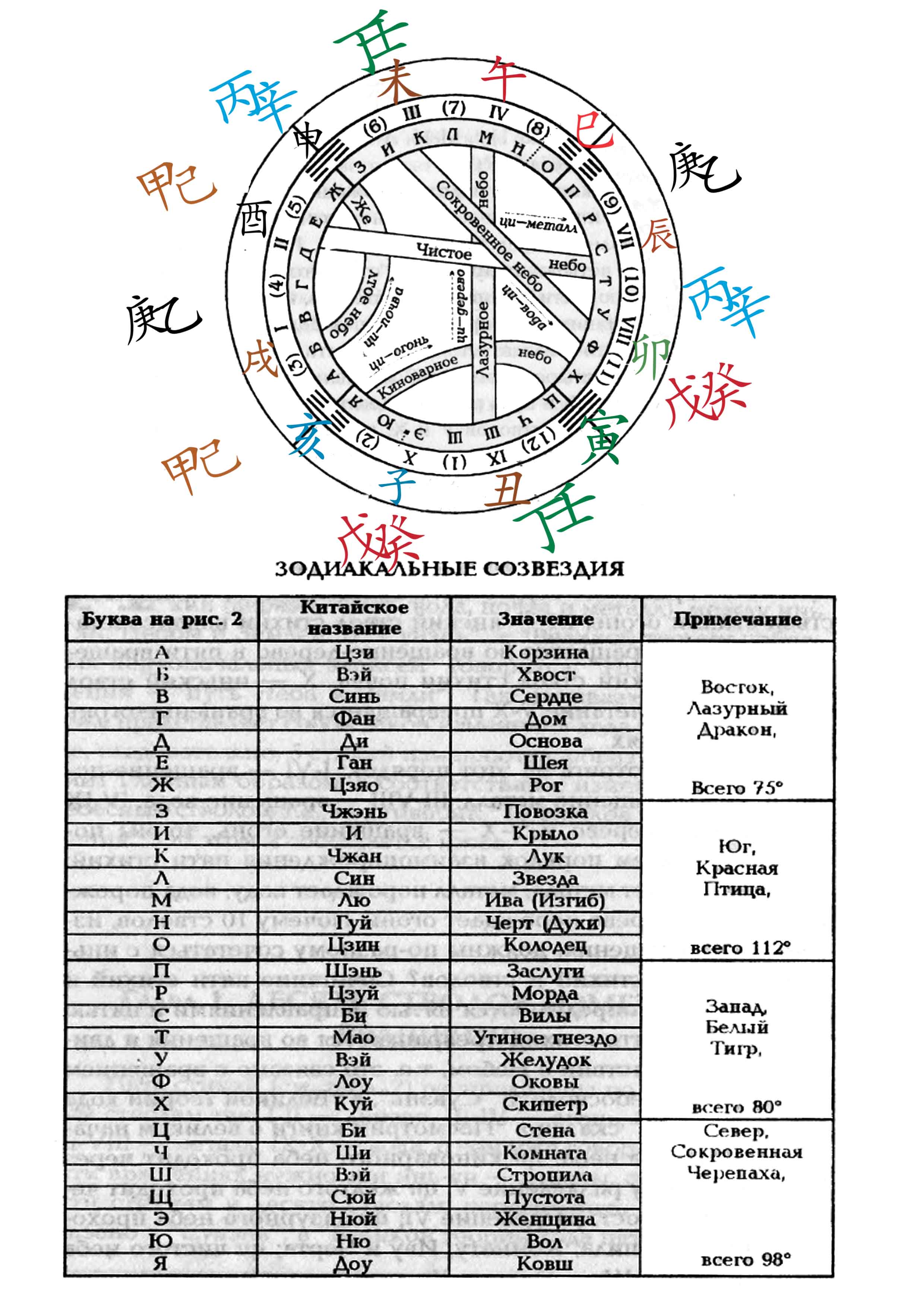 28 Лунных домов изначально разделены на 4 стороны света, у каждой части есть свои 7 созвездий, каждая представляет собою определенный промежуток в градусах, на мой взгляд все-таки ложатся на эклиптику. И каждая сторона имеет свое отношение к 10 Небесным стволам. В «Сувэнь», в «Великой теории хода пяти вращений» сказано: