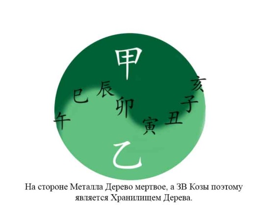 Иньские элементы порождают в Хранилище Скрытый Небесный ствол, не янского, а иньского элемента, следующего за ним элемента стихии.