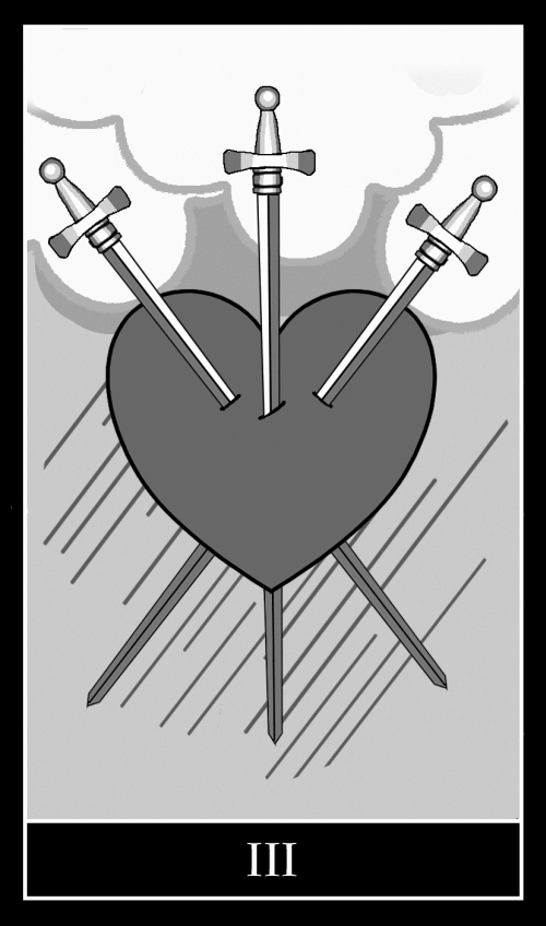 Мечи, протыкающие сердце, символизируют, что человек ожидал одного, но получил другое. В общем раскладе карта будет обозначать ситуацию, при которой гадающий достигнет желаемого, однако счастья это ему не принесет.