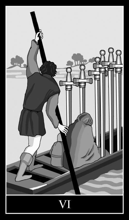 Шестерки – карты взаимосвязей в обществе. На них мы находим мотивы взаимопомощи в тех или иных вопросах. Так, в Шестерке Мечей пассажиры лодки вряд ли бы добрались до противоположного берега без опытного лодочника.