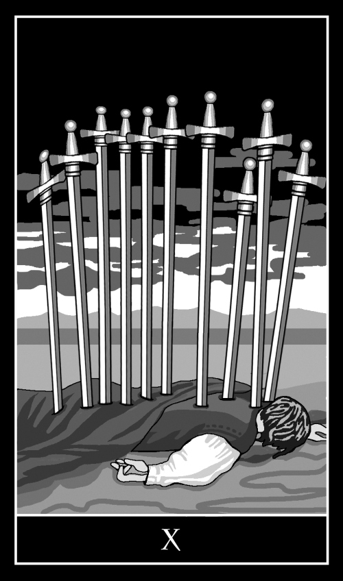 Несмотря на всю трагичность происходящего на карте Десятка Мечей, данный Аркан не стоит воспринимать буквально как физическую гибель. Как и со всеми Мечами, речь идет о ментальном состоянии человека, о его мыслях и взглядах.