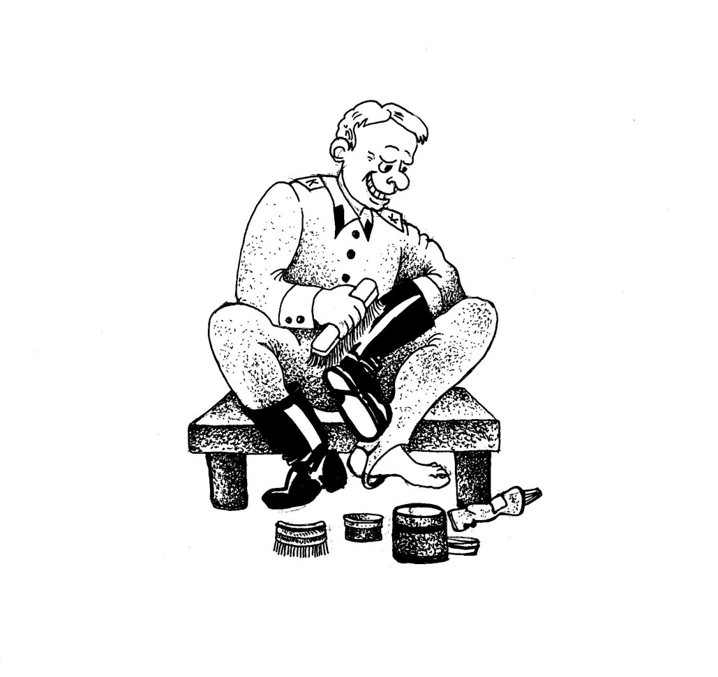 Сапоги – это вообще была его слабость. Он таскал с собой в полевой сумке и карманах кучу щеточек, «бархоток» и кремов и начищал сапоги до невероятного блеска. При первых же признаках малейших пылинок на них Шура бросался с остервенением надраивать сапоги, используя для этого любую возможность.