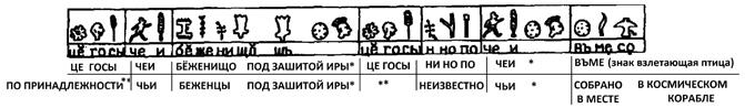 Читаем надпись в обратном направлении: указательный знак направления (удар) СИНИЙ НАМ ЯМА (могила). Это Марс объясняет нам причину своего поступка. То есть СИН (звезда Спутник/Телец) убьёт нас, если мы не убьём его прежде.
